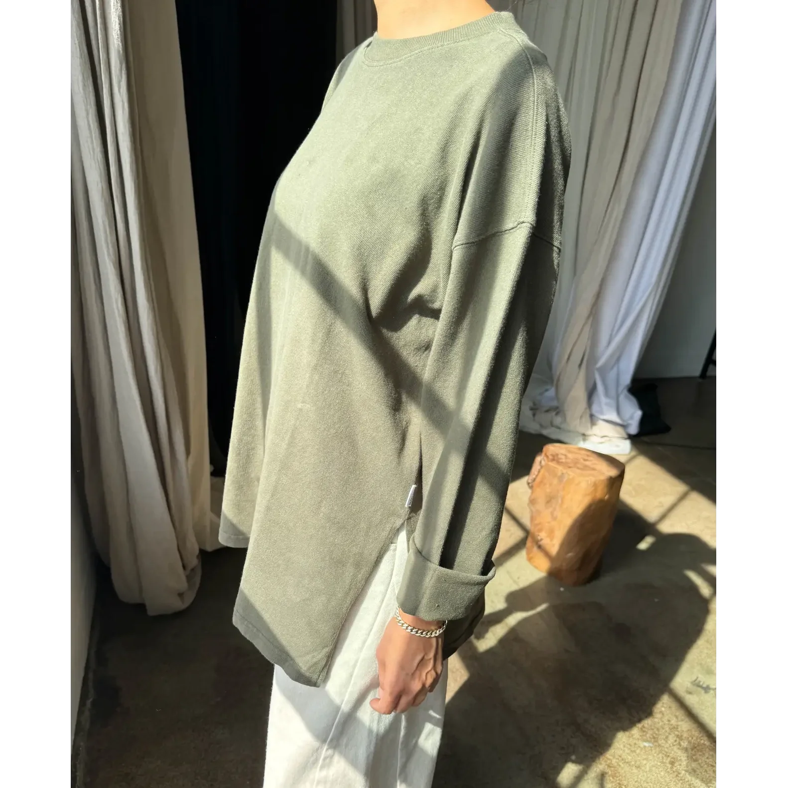 Sunday Tee is inspired by menswear classic long sleeve tee. Subtle yet playful high side slit transform this simple piece into a fun closet staple. Sleeves are wide enough to roll up!