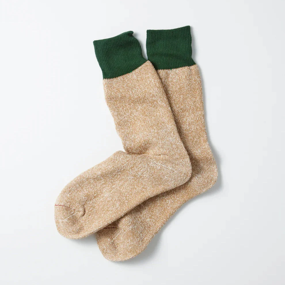 These double-layer socks are knitted by skilled craftsmen with a hard-to-find machine in the town. The surface fabric is made of colored cotton, while undyed silk is used for the lining. To bring the best out of the advantages of silk, such as moisture absorbency as well as heat and moisture retention, the liner fabric is finely knitted with a pile surface.