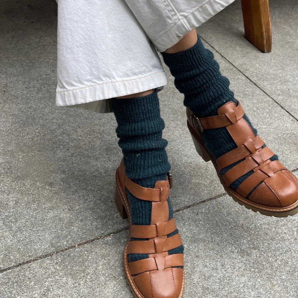 The essential wool socks with a touch of silk and cotton to add a softer touch. They can be worn up, scrunched down, or rolled to your liking. Great for winter weather or an alternative to slippers on a cool summer night.